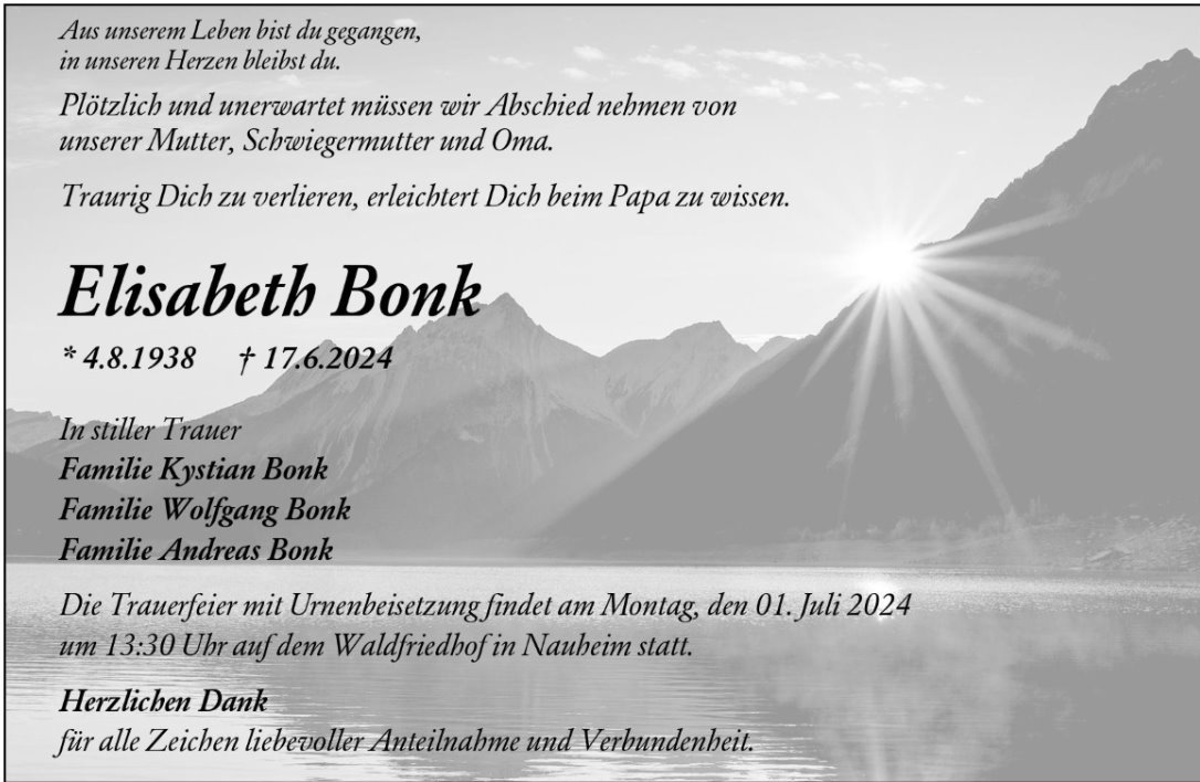 Ich wollte mich einfach alle wenden ,die uns in diesen Stunden beistehen und uns mit tröstenden Worten und Taten zur Seite stehen.