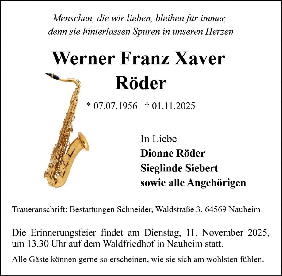 Ihr Lieben - das ist ein sehr trauriger Moment! Ich kannte Werner über viele Jahre eher flüchtig obwohl wir beide lange Zeit beim HR arbeiteten oder, in meinem Fall, dies noch tun. Seit 11 Jahren haben wir uns dann regelmäßig in der Bigband 82 gesehen, er war immer Garant für menschliche und musikalische Stabilität und er war, das ist ganz wichtig in so einem Haufen, ein echter Typ mit "personality". Er hat uns seit seinem krankheitsbedingten Ausscheiden schon sehr gefehlt und wir werden seiner in Ehren gedenken. R.I.P Candy!
